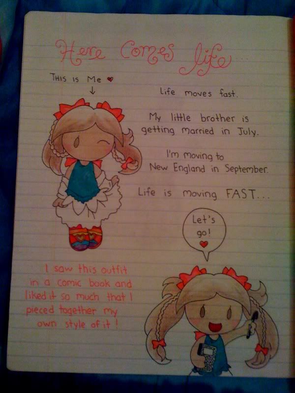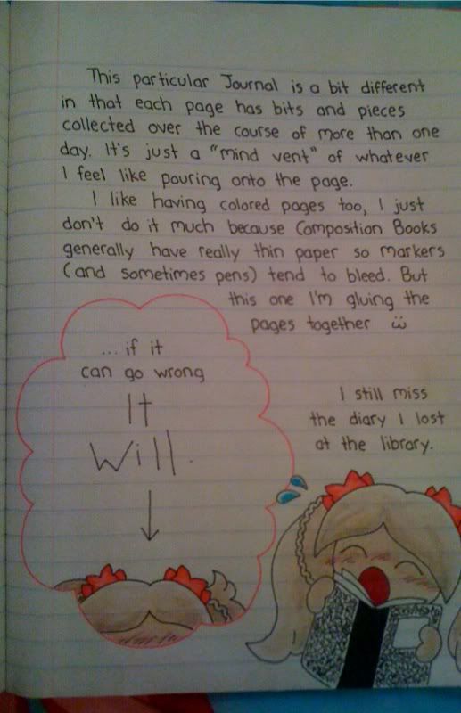One of my favorite things to do is art journaling. Here are some pages from my most recent journal... Note that some of the artwork won't make sense because I cropped out the corresponding entry, but it's all in fun anyway :3
